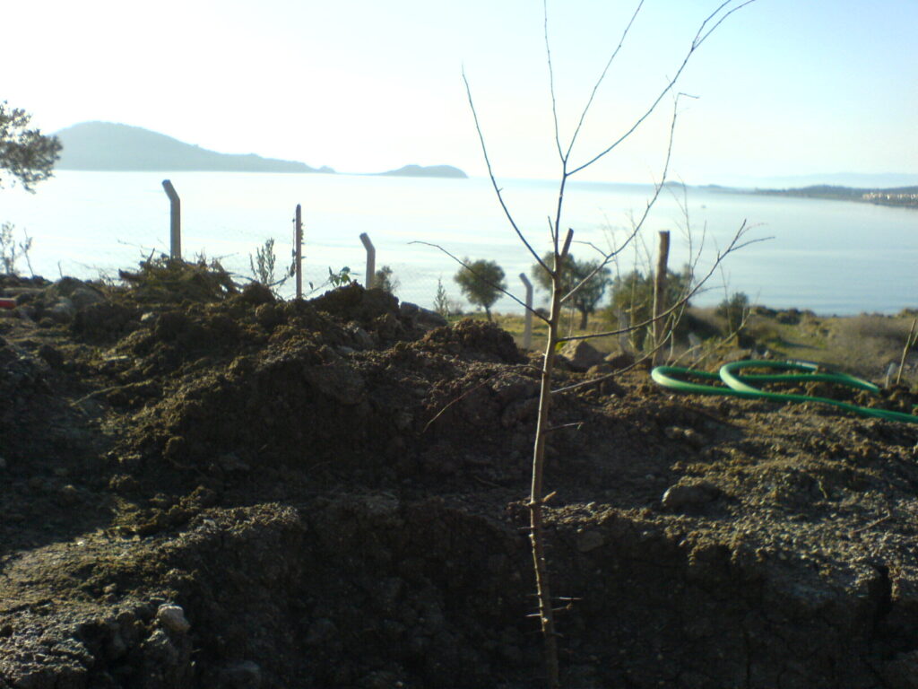 İşe topraktan başladık. Ana ağacımız olan zeytinin yanına; limon, mandalina, nar, erik, şeftali, kayısı, cennet hurması, ayva, incir ve dut gibi meyvelerden oluşan 100’den fazla fidan diktik. Sadece dikmekle kalmadık; çevrede kendiliğinden yetişen zeytin, çınar, defne, hayıt, mersin ve zakkumları koruma altına aldık, onları çoğalttık.